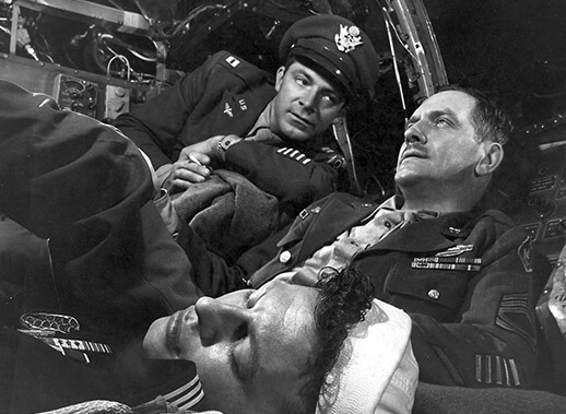 Just days after finishing work on Mrs. Miniver, the director wired Washington D.C. to join the Army’s Photographic Division. Like other filmmakers of his day, he was determined to use his talents to capture footage of the war. After passing a physical and paying the price of a uniform, the army assigned him the rank of Major, and Wyler set off to war with a hand-picked crew of Hollywood technicians behind him. He had orders to make films about the Eighth Air Force for training, morale, and historic purposes. Soon enough, Wyler had his first experience flying in bombing raids, and he realized that his Oscar-winning picture Mrs. Miniver got it all wrong; it was fluff, but what he was experiencing was real. The tough filmmaker never backed down from the assignment, however, regardless of some opposition. General Ira C. Eaker, realizing that Wyler was the Jewish director behind Mrs. Miniver, a film the Nazis hated given its popularity, sought to ground the director, fearing that Wyler might receive some particularly cruel treatment should he be captured on a mission. Wyler refused, even though he could have been court-martialed for his decision. It would not be the last time Wyler faced a court-martial during his service. In 1944, he narrowly avoided arrest when, in Washington, after an angry bellman called a customer “one of those goddamned Jews,” Wyler slugged him.