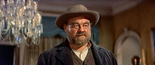 The story follows Jim, who arrives from the East Coast with plans to marry Patricia Terrill (Carroll Baker). Her family lives on an expansive ranch owned by her father Henry, known as The Major (Charles Bickford). The Terrills have a longstanding feud with the Hannasseys, a rough bunch living in Blanco Canyon under the leadership of their patriarch, Rufus (Burl Ives). Both families depend on the Big Muddy, a winding river that offers the only water for miles, to support their cattle. But the river snakes through a lush piece of land owned by Julie Maragon (Jean Simmons), the local schoolmarm. Honoring her grandfather’s wishes, Julie will gladly allow both the Terrills and Hannasseys access, except that the Major and Rufus have a mutual hatred—going back so far, it’s doubtful either man remembers what started their conflict. Terrill, a “high-toned skunk,” claims he will bring civilization to the West with his fancy home full of chandeliers and imported furniture, where he holds elegant parties and puts on an air of sophistication to mask his cruelty. His daughter, Patricia, has an outwardly ladylike appearance, and while her family’s East Coast values seem to represent a touch of class, they prove downright savage when it comes to the Big Muddy. The Hannasseys, meanwhile, poor and living in wooden shacks, dress like gnarled cowboys. Rufus’ boys, headed by the aggressive Buck (Chuck Connors), drink and cause a ruckus in town and on frontier roads. Buck sniffs after Julie, and his method of courtship extends from home invasion to attempted rape. Despite his unruly children, Rufus has a sense of honor and dignity. But with the nearest law some 200 miles away, the land dispute escalates after Jim’s arrival.