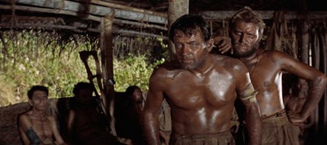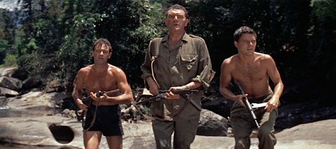 While Nicholson suffers the jungle heat in detainment, an American in Saito’s prison, Naval Commander Shears (William Holden), plans a getaway. Barely escaping the jungle alive, he finds rescue in a Siamese village and recovers from his ordeal in a Ceylon hospital, where he enjoys the peaceful beaches and the company of an affectionate nurse. While mending, Shears is approached by Major Warden (Jack Hawkins), of the shrewdly renamed Force 316, to accompany a commando mission back into the jungle, where they will sabotage the bridge over the River Kwai. Shears refuses until Warden reminds him that he is not Shears but an enlisted man that switched identities with the real Commander Shears to get better treatment after their ship sank. Now reactivated with the “simulated rank of Major” and under British control, “Shears” has no choice but to join. The commandos parachute into the jungle and, along with a Siamese guide and several porters, they make their way to the bridge.