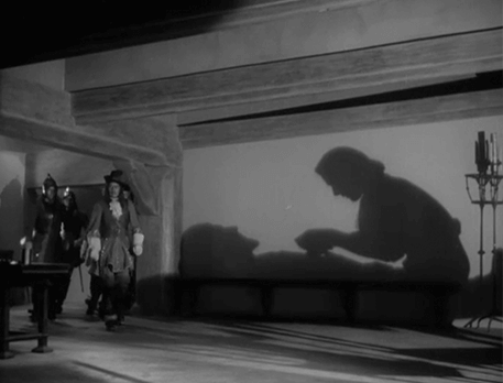 Curtiz’s visual signatures appear throughout Captain Blood, even if they were overlooked by Sarris. The director creates a dynamic understanding of space, giving the viewer a clear impression of the environment. His camera pushes in to emphasize dramatic potency or yearning, and then it pulls away to signify isolation and rejection, sometimes within the same take—other filmmakers would just cut between the medium shot and the close up. But Curtiz activates otherwise staid scenes by projecting massive shadows of vegetation or soldiers onto blank walls, inscribing every shot with vibrant lighting and realistic details. Additionally, the entire story is told with an air of sophistication through Robinson’s clever dialogue. Blood, described as having a “rascally mouth,” is given a sharp tongue to match his intelligence, and Flynn captures the hero’s defiance of authority in scampish and intense expressions. Curtiz also emphasizes how Blood and Arabella always seem to have two conversations, one with their words and another with their eyes, and the charisma between Flynn and de Havilland is palpable. The director deploys every tool in his considerable kit, putting everything onscreen into a composed harmony. And though not qualifying for every statute inscribed in the subjective limitations of the auteur theory, Curtiz’s approach remains that of an impeccable craftsman whose work can be easily identified next to other filmmakers of his time—his work is not entirely selfless and impersonal, as that of other studio-contracted directors.