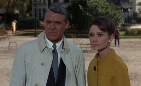 Charade seems like an odd choice for director Stanley Donen, who was primarily known for directing musicals and lighthearted romances by 1963. Before Hollywood, he had a brief career as a stage performer and assistant stage manager; then he started choreographing several MGM musicals alongside Gene Kelly, most famously Anchors Aweigh (1945). Within a few short years, he moved to co-directing alongside Kelly, and they made Singin’ in the Rain (1952) together. Then Donen branched out into a solo career. Seven Brides for Seven Brothers (1954), The Pajama Game (1957), and The Grass Is Greener would follow, each demonstrating that he could adjust his style to the material while maintaining a vigorous onscreen energy and visual ingenuity. One of his finest touches comes in Indiscreet (1958), which features Ingrid Berman as an actress who carries on an affair with a married, albeit separated man, played by Cary Grant. Rather than place them in bed together, Donen shows them on the phone, talking from their respective bedrooms. Juxtaposed together with split-screen, the two images create the impression that they’re sharing the same bed. It’s a trick worthy of Lubitsch. Donen had a way of innovating on established styles and making them his own.