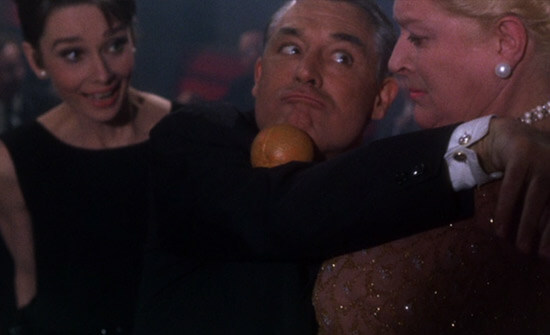 But unlike James Bond, Charade’s protagonist does not make everything look easy, sexual conquests above all. Despite her classy wardrobe by Givenchy, Reggie is awkward, a nervous eater, and occasionally clumsy, leading to a forced moment when she plunges an ice cream cone into Grant’s suit. Hepburn’s pursuit of Grant has the quality of a Lubitsch romance, relying on subtle innuendo and humor. The sole exception is a sequence in a Parisian nightspot where they play Pass the Orange. What starts as a humorous scene where Grant rubs against a bemused fat woman overflows with sexual tension when Hepburn and Grant maneuver their bodies against each other, and it’s enough to spark something in Reggie. This scene aside, their playful interactions recall a sexual reservedness more often associated with Classic Hollywood titles as opposed to the new liberties given to films in the 1960s. When Reggie first meets Grant’s Peter Joshua, their exchange is lively and flirtatious. “Is there a Mr. Lampert?” he asks. “I’m getting a divorce,” she replies. “Please, not on my account,” he quips. Stone’s screenplay features no end of magnetic exchanges like this, leading to the inevitable moment where Grant’s reluctant lover finally acquiesces. And not unlike another Lubitsch-inspired romance starring Hepburn, Billy Wilder’s Love in the Afternoon from 1957, where she was paired opposite Gary Cooper, the May-December relationship in Charade works somehow. They’re wrong for each other, but they’re also so right together.