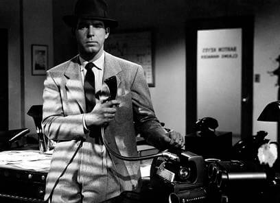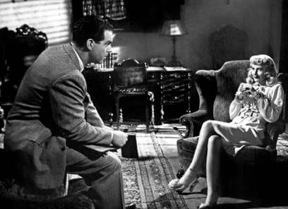 Whatever lustful passions that may have existed between Walter and Phyllis quickly disappear after the murder. Walter is rapt with dread. “I couldn’t hear my own footsteps,” he narrates in one scene. “It was the walk of a dead man.” He begins to rethink everything, especially Phyllis. He’s since learned from Phyllis’ step-daughter Lola (Jean Heather) that Phyllis was once the nurse of the previous Mrs. Dietrichson, Lola’s mother, who died under mysterious circumstances. In all likelihood, Phyllis killed once before to get what she wants, and now she’s convinced Walter to help her do it again. “We’re both rotten,” she says, faking guilt so as not to appear heartless. Walter replies, “Only you’re a little more rotten.” Walter continues to learn more about Phyllis as the heat increases. It turns out she’s been seeing Lola’s boyfriend on the side, a young man named Nino (Byron Barr). Keyes, who investigates the case for Pacific All Risk, believes Phyllis and Nino planned the entire murder. Walter knows that Keyes suspecting Phyllis means he’s getting one step too close. He resolves to rid himself of Phyllis, but she shoots him first when they meet, wounding him. “I never loved you, Walter,” she says. “Not you or anybody else. I’m rotten to the heart… I used you, just as you said. That’s all you ever meant to me… Until a minute ago, when I couldn’t fire that second shot.” Walter doesn’t buy it. He shoots and kills her. Wounded and struggling, he makes his way back to the Pacific All Risk office and records his story for Keyes, who finds him and calls an ambulance.