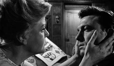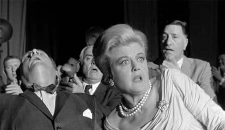 Fortunately, there’s nothing so uncertain about Mrs. Iselin, who must be one of cinema’s all-time greatest villains and certainly the best performance of Lansbury’s career. Pulling the strings on her husband’s campaign of fear, Mrs. Iselin, like McCarthy, hides under the guise of a patriot to control America, even while she makes plans to destabilize it. And anyone who disagrees with her is a communist. The power behind the throne, Mrs. Iselin controls her dim-witted husband and talks to him like a child, at one point telling him to “Run along, the grown-ups have to talk.” At a press conference, she mouths her husband’s hysteria rattling speech as Sen. Iselin announces the ever-changing number of card-carrying communists in the Defense Department. Later, he begs her for a consistent number, as the press has started to grill him about it; she smiles and takes the number from her husband’s bottle of Heinz 57. The Manchurian Candidate is nothing if not darkly comic. But as Mrs. Iselin treats her husband like a child, she’s also effectively (and incestuously) flip-flopped the role of her son Raymond to that of a lover. When she prevents Raymond’s happiness and forbids him from seeing the love of his life, Jocie (Leslie Parrish), daughter of Sen. Iselin’s political rival Sen. Thomas Jordan (John McGiver), her actions seem to be out of political interest. But perhaps it’s out of jealousy. In Condon’s book, the scene where Mrs. Iselin activates her son to kill the forerunning presidential candidate in the next election is followed by Mrs. Iselin taking her son to bed. Of course, censors would never allow Frankenheimer to suggest such blatant morbidity, but he nonetheless hints at incest when, after ordering Shaw to kill, she plants a long, intimate kiss on her son’s lips. The screen fades to black, and the rest is left to our imagination.