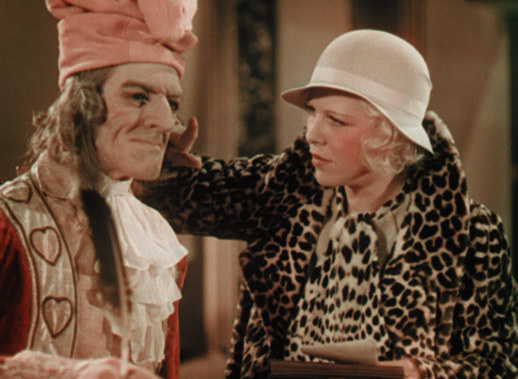 Since Doctor X was filmed using the new two-strip Technicolor process developed by Herbert Kalmus’ company, The Mystery of the Wax Museum would be too. As part of Warners’ 1929 contract with Technicolor, the company sent over the same cinematographer, Ray Rennahan, along with camera operator Dick Towers, to oversee its application. Though the two-strip process was incapable of representing the full range of color achieved by the later three-strip process, developed in 1934, it could still convey a great deal in its limited reds and greens—which is especially evident in the recent restoration. The color range gives the picture its Gothic, occasionally putrid look, which lends itself quite well to the horror genre. But the appearance might be confused for hyper-stylization or even faux colorization, as opposed to the innate limitations of the two-strip technique. Still, the presence of deep red blood and luminous orange fire in a 1933 film has a way of sharpening its effect on the viewer—today even more so than the year of its release, since the film was often projected in black-and-white due to ill-equipped moviehouses. Technicolor, and the intense lights used to enhance the process, resulted in another haunting quality. Since real wax sculptures would melt under the harsh lighting conditions, Curtiz used a combination of mannequins and actors to play statues. Though the resulting effect means the occasional gaffe, such as a statue that blinks now and then, it also lends the picture the disturbing sense that these figures are alive—that Igor has somehow imbued them with terrible life.