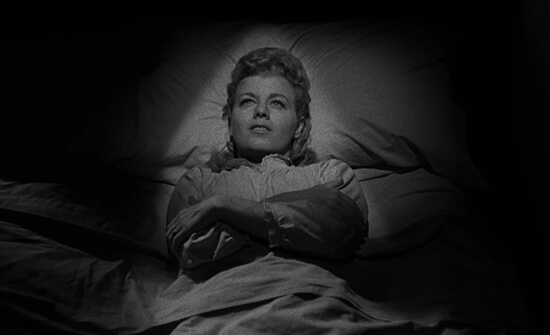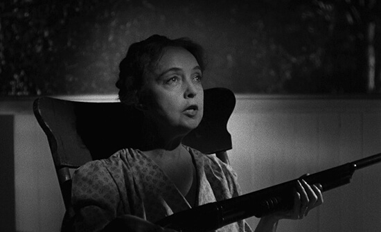 Besides Mitchum, Laughton cast supporting actors who would disappear into their roles. Lillian Gish had been a source of joy for Laughton during his tour in World War I, especially after seeing her in Broken Blossoms (1919) several times. In 1962, Laughton awoke from a coma on his deathbed to announce, “I fell in love with Lillian Gish.” She seemed to embody resounding decency for the director, and he could envision no one else playing Rachel. Gish had since retired from acting after her experience with David O. Selznick making Duel in the Sun (1946), but Laughton convinced her to join the cast by selling the purity of the role. Elsewhere, Shelley Winters, one of Laughton’s acting students, was honored that her teacher offered her the part of Willa. She would play a similar broken widow role in 1962 for Stanley Kubrick’s Lolita. James Gleason, an Oscar nominee for Here Comes Mr. Jordan (1941) and lifelong performer in the theater, gave life to Uncle Birdie Steptoe. After some acclaimed experience on Broadway, nine-year-old actor Billy Chapin was cast as the child hero, John. And the untested Sally Jane Bruce played Pearl in her sole foray into acting.