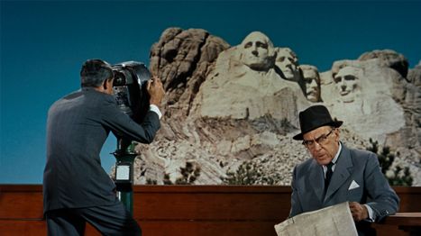Shooting scenes of violence and espionage in iconic locations became a predictable hurdle for North by Northwest. United Nations officials denied Hitchcock permission to shoot an assassination sequence at the New York headquarters. But the director refused to concede so easily. He placed cinematographer Robert Burks inside a covert carpet-cleaning truck to sneak an exterior shot of Grant approaching the entrance. For the accurate interiors by production designer Robert Boyle, Hitchcock and a still photographer posed as tourists to steal some photos of the inner building. The Department of Interior officials in charge of Mount Rushmore presented Hitchcock with another set of problems in Rapid City. They limited Hitchcock’s crew by cutting their shoot time to two days and confining their cameras to the cafeteria and parking lot. This was more than enough for Hitchcock, who captured enough still photographs for Boyle to create the interiors on Hollywood sets. Finally, the director wanted Cary Grant to slide down Lincoln’s nose, hide in his nostril, and then suddenly have a sneezing fit. But the landmark’s authorities would not allow Grant to appear on the actual faces of the monument’s past presidents, or even Boyle’s duplications, only between the faces to preserve the integrity of the nation’s most venerated figures. The sneezing gag was eventually scrapped.