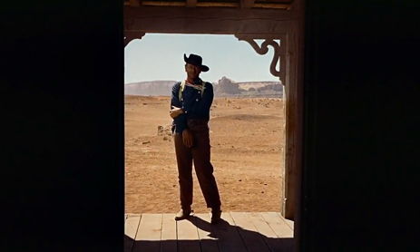 In the film’s most memorable scene, one of the greatest single moments of all cinema, Ethan emerges from Scar’s tent on his horse and spots Debbie, who, dressed in full Comanche attire, runs in terror. Ethan chases her down a hill and corners her, Martin trailing behind yelling “No!” for Ethan not to do what he has intended to do from the outset. Ethan gets off his horse and picks Debbie up, raises her in the air like a child, the fear radiating from her. He lowers her into his arms, and says, “Let’s go home, Debbie.” Could it be that after Scar’s death and scalping some valve releases Ethan’s rage, permitting him to finally view Debbie as not an object taken and since tainted, but as his niece? In the face of saving Debbie, Ethan can neither claim his redemption nor have the happy ending the film’s other characters enjoy. For the last shot, Ford places the camera in the front door of the Jorgensen’s, Debbie’s new home. The shot pulls back as the Jorgensen’s enter with Debbie, Martin and Laurie following behind, the perfect symmetry again framing the wild desert. Ethan remains just outside, gripping his arm as if injured. Ford seems to suggest that Ethan has not yet settled whatever conflict still rages inside. Is this Ethan’s lingering racism? In a way, does he still want Debbie dead? If so, he cannot truly be at peace, and so he must continue his drive.
