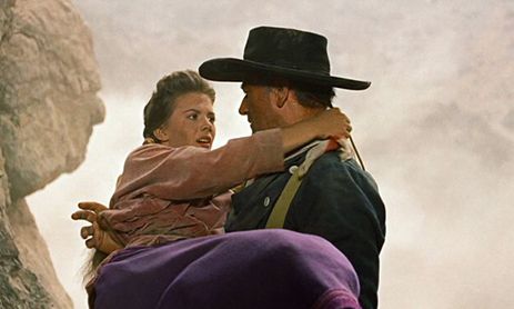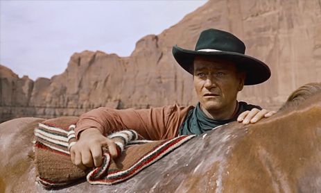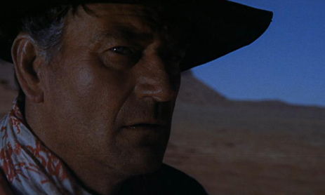 The Searchers signifies a defining moment in Ford’s filmography where he ceases to purport that the push across the Plains and over the Rockies was a dreamily romantic voyage of cultural discovery and accomplishment, and instead suggests, even if Hollywood was not prepared to listen, that there are consequences. Ford’s message inhabits the realm of the allegorical and psychological, avoiding any outright, condemning dialogue on the matter (like that heard later in Ford’s last Western, Cheyenne Autumn from 1964). The film’s commentary is hidden deep in the subtext, where observations are occasionally lost or misinterpreted when placed next to its lighter notes of comic relief and romantic folly, no doubt included by the filmmaker for his mainstream audience’s benefit. For every harsh outlook declared by John Wayne’s racist hero Ethan Edwards, a more frivolous scene follows to ease the viewer, creating a contradictory, yet brilliant and strangely rewarding marriage of light entertainment and dark territory.