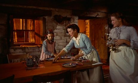 Though employing them as villainous characters in broadly defined yarns, Ford also censured the white man for his cruel, genocidal attitude toward the Indian. Consider the scene where Ethan shoots down as many buffalo as he can, hoping to dwindle the Indians’ food supply. But more than just food, buffalo represent the very livelihood of Native Americans, as Francis Parkman wrote: “The buffalo supplies them with almost all the necessities of life; with habitations, food, clothing, and fuel; with strings for their bows, with thread, cordage and trailropes for their horses, with coverings for their saddles, with vessels to hold water, with boats to cross streams, with glue, and with the means of purchasing all that they desire from the traders.” With each buffalo gunned down, Ethan destroys the livelihood of his enemy, ostensibly executing a group of Indians with every precise shot. Ford saw Native Americans as a natural part of the western landscape, not implicitly violent unless tempted by the intruding, cruel white man. His silent-era epic The Iron Horse features villain-Indians led by a white man; Drums Along the Mohawk and Fort Apache each offer Indian attacks only after being provoked by white man’s disturbance of their land—their violence is sharp and cunning, but in reprisal to broken agreements and double-crosses dealt by white people. Ford would prefer an understanding of cultures and includes Martin Pawley as a symbol of hope for both races to merge communally and develop a peaceful understanding, and thus allows Martin to enter a fruitful romance with the neighbor girl Laurie Jorgensen (Vera Miles). Furthermore, Ethan’s eventual, shall we say, tolerance of Martin, allowing the “half-breed” to accompany him on the five-year trek, also suggests his racism will subside in the end.