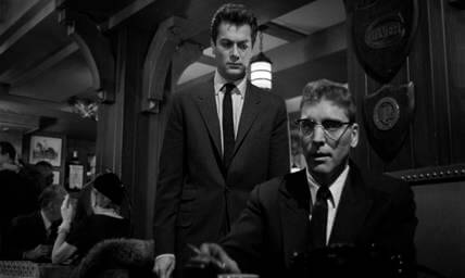 Sidney Falco, a pilot fish press agent, hovers around his meal ticket, bloodthirsty shark J.J. Hunsecker, the powerful gossip columnist. Seated at his regular table in the 21 Club, Hensecker shares dinner with a senator, a blonde hooker, and the agent who functions as a social buffer between these dinner guests. Sidney calls the table and asks to join them. Hunsecker’s voice replies, “No, you’re dead, son. Get yourself buried.” Sidney has failed Hunsecker in a crucial task, and now he must grovel to earn another shot. His career on the block, Syndey marches in anyway and stands himself beside and almost behind Hunsecker. Without looking at Sidney, Hunsecker addresses the senator, and, with airs of great precision and menace, speaks indirectly to Syndey: “Harvey, I often wish I were deaf and wore a hearing aid. With a simple flick of a switch, I could shut out the greedy murmur of little men.”