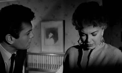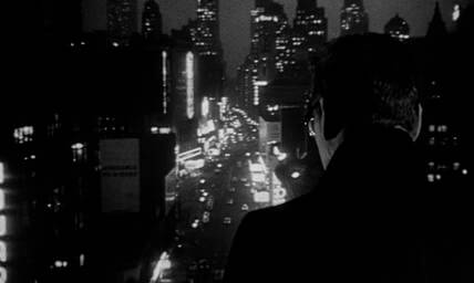 Overwhelmed by guilt after watching Dallas arrested, Sidney stops to order a drink and toasts, with false enthusiasm, “To my favorite new perfume: Success!” During the toast, he receives a call to report to Hunsecker at his decadent penthouse apartment high above the city. When Sidney arrives, he finds Susie in a slip, heartbroken over Dallas and talking of suicide; she makes for the terrace to jump, but Sidney stops her and throws her on the bed. Hunsecker enters at the perfect moment to misread the situation, and it becomes apparent that Susie has organized this confrontation between Hunsecker and Sidney. Faced with Hunsecker’s harsh glare and accusatory tone, Sidney tries to explain why his hands were on Susie. When that fails, he defends himself in front of Susie and attempts to push back, openly accusing Hunsecker of orchestrating Dallas’ arrest. Hunsecker calmly calls his muscle, and, for his aspirations and scheming, Sidney faces brutal film noir punishment offscreen. Susie, meanwhile, sees through her brother’s false concern and ignores his threat of sending her to “a good psychoanalyst” for her attempted suicide. She tells him “I’d rather be dead than living with you” and leaves. In the last scenes, Susie walks into the warm dawn light free of her brother, who remains perched on a dark balcony and looks down high above the city.