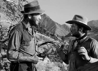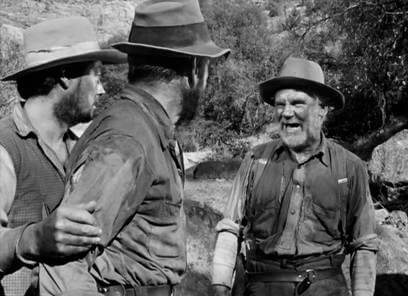 Dobbs’ suspicion begins as petty bickering and grumbling but soon gives way to threats, turning the camp toxic, dangerous even. We might even feel sorry for Dobbs through his descent, except that he remains indefensible and downright pitiless. Consider Dobbs’ quick and cruel logic when a cunning, unwanted stranger named Cody (Bruce Bennett) arrives and demands to become a partner. Cody offers them an alternative he doesn’t think they’ll take, suggesting they can either kill him or allow him to join. If they allow Cody to leave, he could give away the location of their mine—to which they have no official claim. Dobbs demands a vote, and along with Curtin, they have the majority to murder Cody and protect their mine. Fortunately, before they can carry out their frontier murder, Gold Hat and his bandits attack and do the job for them. Their morals have sloped into a cold democratic justification, whereas earlier there was no question as the right thing to do. For example, there’s an early scene in which a cave-in traps Dobbs inside, and Curtin hesitates to carry out a rescue. Leaving Dobbs to die would mean a larger cut, after all. But Curtin’s indecision is brief, and he soon races to rescue his partner without the need for a vote because it’s the right thing to do. Later in the film, Curtin’s sense of moral obligation is rewarded with a bullet.