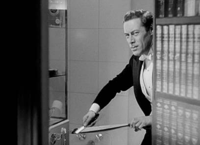 Because Sir Alfred never carries out Daphne’s murder, and Daphne never learns how close she came to oblivion, Unfaithfully Yours bears a certain resemblance to Hitchcock’s Suspicion. In the 1940 release, Joan Fontaine stars as a wife whose new husband, played by the charming Cary Grant, seems to be plotting the murder of his pet-named wife “monkeyface” to resolve his gambling debts. Through the course of the film, she has a few close calls, but the suspense is ultimately all in her head (and ours), since her husband never had any plans to murder her. (NOTE: In Hitchcock’s original treatment, Grant’s character was trying to kill his wife; however, the studio decided that the audiences would not want to see the exceedingly popular and charming Grant play such an against-type role.) Hitchcock manipulated the orchestral score and camerawork to influence the audience’s reactions, delivering what is largely an empty, meaningless experience. The subject of both Hitchcock and Sturges’ film is deceptive, in that they plant the expectation of murder, whereas no murder will ever take place. Instead, they consider the everyday state of mind common in many human beings and our relationships, where we offer our trust to another person but the completeness of that trust, and the degree to which we can truly know someone, remains finite. A level of secrecy exists in every relationship, no matter how open it may seem. Sturges and Hitchcock’s film suggest that behind every set of eyes lurks a mind that, whether it intends to carry out such thoughts or not, thinks of murder.