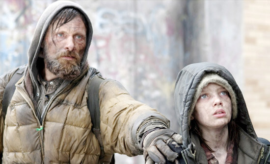 Memories are the only refuge for The Man. He recalls a more colorful time with his wife (Charlize Theron), amounting to an ambiguous subplot best explained as his only escape. Thinking of her is his sole diversion from this world, but memories are also painful. She was unwilling to fight as he was. What, after all, are they fighting for? Why go on when the weather just keeps getting colder? When The End is so evidently near? These memories of her trouble his existence. He says that dreaming about bad things means you’re afraid, so you’ll keep moving forward; dreaming about good things means you’ve resigned to your fate and now wish to escape. He’s been dreaming a lot lately.