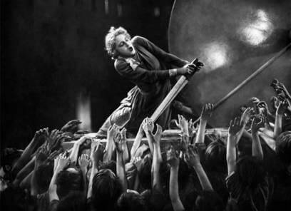 Then again, certain facts of Lang’s encounter with Goebbels, often told and retold by Lang with varying detail, have since been debunked and, though probably not completely false, the story was surely edited and sensationalized by Lang for maximum peril and excitement, further adding to his own mythology, and the film’s. Perhaps it’s a case of Lang’s penchant for anecdotal entertainment, not unlike tales surrounding his monocle. In his book Fritz Lang: The Nature of the Beast, author Patrick McGilligan posits that Lang’s story was likely a combination of multiple visits with Goebbels. However true or untrue, as a result of Lang’s brief association with Goebbels, not to mention von Harbou’s Nazi affiliations, it’s virtually impossible to watch Metropolis today and not see why its obsession with machine-like movements and larger-than-life imagery impressed the Nazis, who were themselves so dependent on visual iconographies to support the authority of their party. When city workers march in lines to and from the job, the procession and its carefully orchestrated movements recall Nazi rallies—the “mass-ornament”—and their orderly arrangements are so frightening in their mechanical-yet-human physicality. These associations, compounded by the weak and idealistic narrative of the film, would leave Metropolis a masterpiece of visual distinction, where the aesthetic power of an image is greater than the meaning of that image. Lang would later realize the error of his film’s rather ambiguous, under-explored message, attributing the politics to von Harbou (Lang had originally considered an ending where Maria and Freder fly off in a spaceship but conceded to his wife). In an interview with the Cahier du Cinema in 1965, he suggested there was an unnecessary moral element in the film, but “the problem is social, not moral,” he said.
