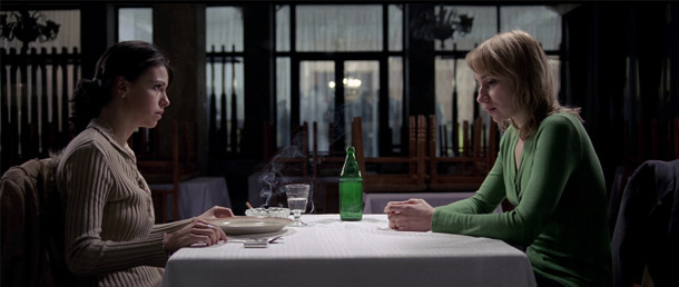 Mungiu based 4 Months, 3 Weeks and 2 Days on an experience that happened to a close friend, and the film’s details seem so impossibly bleak that they must be true. The story opens as Otilia agrees to help Gabita, though it’s initially unclear what they’re setting out to do. Mungiu told an interviewer, “I wanted very much to start the film with the silence that occurs in a conversation right after you have asked somebody for a little more than you should have.” During the first act, Mungui builds tension through fastidious attention to detail and process. After agreeing to help her friend, Otilia buys soap and cigarettes then asks to borrow money from her boyfriend, Adi (Alexandru Potocean). She reluctantly agrees to stop by Adi’s mother’s birthday party later that night. Next, she arranges a hotel room and makes a rendezvous with a stranger named Mr. Bebe (Vlad Ivanov). When Otilia, Gabita, and Bebe meet in the hotel room, they engage in a grueling negotiation process that involves details about Gabita’s pregnancy, the legal risks, and Bebe’s payment. Finally, the words “termination” and “abortion” are used. Bebe does not want money for his services; he expects both women to have sex with him. They have no other choice but to submit to his sexual exploitation of the situation. Afterward, he performs the abortion and leaves them in the hotel room. Gabita must wait on the bed for the procedure to take effect, while Otilia visits Adi’s family as promised and endures some isolating dinner table conversation. When Otilia escapes the conversation and calls the hotel room to check on her friend, Gabita does not answer. She rushes back to discover that Gabita has passed the fetus. Otilia wraps up the remains and follows Bebe’s instructions: she locates a tall building, where she tosses the evidence down a garbage chute. Upon returning, she finds Gabita in the hotel restaurant, and the two agree to never speak of what happened.