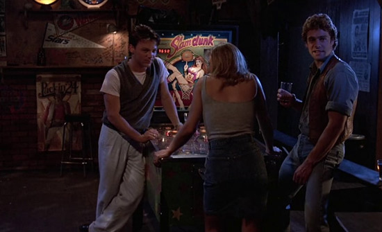 The gang rape scene may last just three minutes, but it feels much longer. It’s excruciatingly protracted and painful to endure, not only given what it shows but how Kaplan and company decided to film it. Seeing the rape through Ken’s eyes, the camerawork by d.p. Ralf Bode watches as Sarah performs a drunken dance in the bar’s game room, ogling her just as the growing crowd of men does. The scene’s use of the gaze remains confused and uneven. One of them, Danny (Woody Brown), starts kissing her, and she pushes him away. A moment later, he has lifted her onto a pinball machine and torn off her underwear. Danny holds her down, covers her mouth, and begins to rape her. Several men begin howling and goading others to join in. There is some reluctance on the part of Kurt (Kim Kondrashoff), and in a disturbing flourish, the film almost seems to have sympathy for how he’s peer-pressured into raping Sarah. Briefly edited into this scene, which again is told from Ken’s recollection, are a few momentary POV shots from Sarah’s perspective, revealing the nightmarish scene from her eyes. It hardly feels adequate.