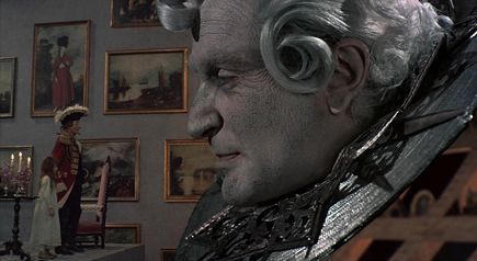 Gilliam, collaborating again with his Brazil co-writer Charles McKeown, opens his tale during the eighteenth century’s Age of Reason in an unnamed European town under siege by Turkish forces. Amid the battle’s gunfire and city’s ruins is a struggling theater in which The Henry Salt and Son production company stages their version of Munchausen’s tales. Owner Henry Salt (Bill Paterson) races to control his frenzied production, cannonballs, and explosions outside audible under the performances, though no one seems to notice. Backstage, Salt’s daughter Sally (Sarah Polley) scurries about, fretting the company’s name because she has no brother. A restless audience watches, among them “The Right Ordinary” Horatio Jackson (Jonathan Pryce), an elected official there to determine if Salt and Son’s company deserves a place in his modern city of rationality and logic. All at once, an elderly man (John Neville) in military garb enters from outside, declaring the play “Lies and rubbish!” as he climbs upon the stage, insisting he is the real Baron Munchausen, and that Salt’s play misrepresents his actual experiences. Munchausen resolves to tell the story as it really happened, beginning with how a wager between him and the Turkish Sultan (Peter Jeffrey) led to the current war.