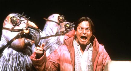 Presented here are some of the broad strokes of Gilliam’s trials, but the production history is outlined to more exhaustive effect in Andrew Yule’s essential book, Losing the Light: Terry Gilliam & the Munchausen Saga. Yule’s behind-the-scenes log details the very worst of Hollywood politics both at the practical and executive level, while the film itself is yet another mirror metaphor in which Gilliam’s final product curiously reflects the film’s journey to the screen. It’s a backstory of stampeding elephants, big business posturing, salary scams, rights disputes, shady producers, poor filming conditions, and a torturous set of circumstances for its director and virtually all involved. When the studio wasn’t threatening to shut down production, the director was so incensed that he threatened to abandon the film altogether, famously punching a hole in the window of his own car in one such bout. The infamous financial disaster of Michael Cimino’s Heaven’s Gate has been called a “paradise” by contrast. Gilliam’s chaotic brand of filmmaking triumphed through seemingly unworkable circumstances nevertheless, maneuvering organizational and just-plain-bad-luck ruin—the extent of which only Gilliam could have perpetuated yet also somehow persevered through. As a result, the film itself remains sorely overlooked next to its production history.