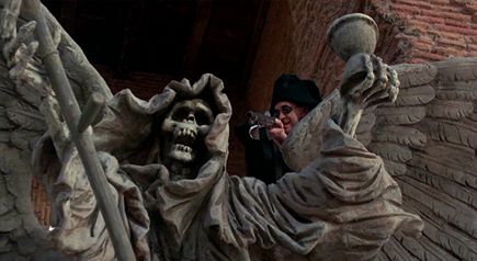 At Munchausen’s wild explanation, in which he takes every last coin of the Sultan’s treasure after triumphing in a bet, logic-obsessed Horatio Jackson deems the theater must close its doors. Munchausen resolves to prove himself by stopping the war after he assembles his former comrades: Berthold (Eric Idle), the world’s fastest man; Albrecht (Winston Dennis), a massive strong man; Adolphus (Charles McKeown), an eagle-eyed sharpshooter; Gustavus (Jack Purvis), a dwarf with extraordinary hearing and the power to blow torrential gusts of wind. With Sally in tow, Munchausen lifts off above the town in a hot air balloon assembled from ladies’ undergarments and sets sail for a series of rescues and domestic encounters with mythical couples. First, they find Berthold on the Moon with The King of the Moon (Robin Williams, credited as Ray D. Tutto) and Queen Ariadne (Valentina Cortese), the Queen and the Baron sharing an evident romantic history. Albrecht, they find within a volcano attending the Roman god Vulcan (Oliver Reed) and his wife Venus (Uma Thurman) as their “dainty” man-servant. Adolphus and Gustavus believe themselves dead in the belly of a sea monster, but the Baron helps them escape with a modicum of snuff (most efficacious). All the while, Death pursues the Baron, with only Sally there to prevent the cloaked Grim Reaper from taking the Baron into the next life forever. Although his old age is revived by a touch of adventure, the Baron’s relevancy is his power, and the Age of Reason threatens to render Baron Munchausen irrelevant. Sally’s belief in his stories seems to be the only thing slowing Death’s pursuit.