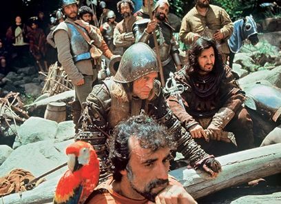 Before shooting began, Herzog visited South America to scout locations in the Peruvian jungle and Amazonian tributaries to ensure that what he had envisioned while writing actually existed. He found his locations, and his cast and crew arrived in Peru shortly thereafter. Filming took six weeks to complete and required camps for 450 cast and crew members, including 270 mountain natives. The locals were members of a socialist co-operative at Lauramarca and were heavily involved in Peruvian politics. They saw Herzog’s presence as an opportunity, first to bring awareness to their situation, and second to earn much more for their work than they were accustomed to making. Reenacting the arrival of the Spanish also appealed to the locals. History was a major part of their identity, and the Spanish conquest was still discussed among them, like “creatures from another planet had landed in spaceships and taken over the whole world,” as Herzog observed. Herzog eventually dedicated the film to one of the locals, Hombrecito, which means “little man”, who he met in the main Cusco square playing the flute. At first, Hombrecito refused to join the crew, believing that if he wasn’t there to play the flute, the people of Cusco would die. Hombrecito came along in time, but his devotion to such a singular, self-propelled and rather deluded idea fascinated Herzog, since his film held similar themes.