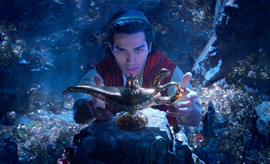 The image of a poverty-stricken “street rat” navigating the crowded, and fictional, thoroughfare of Agrabah, outwitting vendors and outmaneuvering palace guards, who chase after the clever sleight-of-hand artist and his pet monkey Abu, links the previous work of director Guy Ritchie with the 1992 animated classic, Aladdin. Ritchie has made a career out of forging new molds from recycled material. He revitalized the British gangster genre, turned Sherlock Holmes into a streetwise rascal, and made King Arthur a pickpocket and street fighter—all with a smattering of Dickensian setting and characterization. It’s no wonder Disney tapped Ritchie to helm the equally Dickensian Aladdin, the latest product in their recent outpouring of not-quite-live-action fare designed to hook younger generations with their valuable intellectual property. But given Ritchie’s track record, the screenplay he co-wrote with John August is disappointingly straightforward and not at all another of his gritty revisions. Instead, the director repeats every obligatory song from the original and hits every story beat as if following a mandatory checklist passed down by Disney overlords.