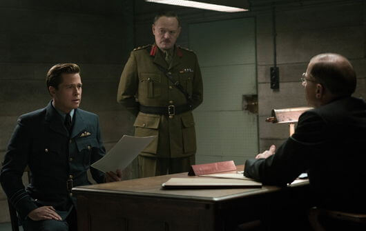 A year later, the story finds them together in London, married and parents to a newborn baby, ready to live happily ever after. Their characters soon face trouble when an SOE official (Simon McBurney) demands to see Max, and then warns there’s evidence suggesting the real Marianne was killed before Casablanca, and the woman with whom Max now lives is a German spy. The official explains they’re going to run a “Blue Dye” on Marianne, and just when a duller film would include expositional dialogue to explain what that means, Max interrupts and says he already knows how it works. They plan to leave out a piece of false intelligence, and if the information runs through a tapped German communiqué within a 72-hour window, then Marianne is guilty, and Max must kill her to demonstrate his loyalty. This is “standard operating procedure for intimate betrayal,” the official explains.
