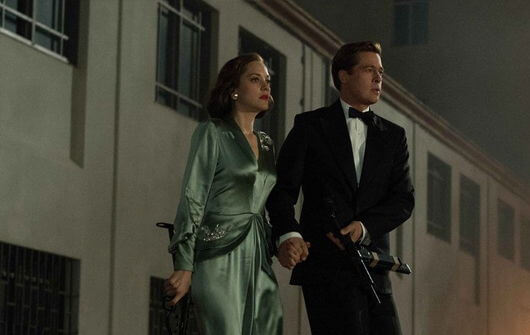 The film opens in 1942, as Canadian intelligence officer Max Vatan (Pitt) parachutes into the Moroccan desert. He arrives at a prearranged rendezvous in Casablanca to meet Marianne Beausejour (Cotillard), a French Resistance fighter posing as Vatan’s wife. She has been in Casablanca for weeks, establishing herself with the Vichy locals and German officials. Together, Max and Marianne intent to carry out an assassination of a German ambassador. Sharply dressed in costume designer Joanna Johnston’s elegant gowns and dapper suits, Cotillard and Pitt stand as one of the sexiest onscreen couples in recent memory, each delivering performances that rank among their best. Their initial interactions demonstrate her ability to charm the Vichy locals and his staid severity, while she plays the life of the party in public but critiques his Parisian accent as too Québécois in private. Nevertheless, the two fall in love while maintaining their cover, regardless of their otherwise detached professionalism, largely because of the fatalistic odds against either of them surviving the mission.