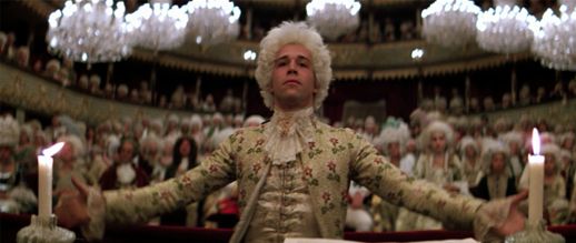 Legendary independent producer Saul Zaentz, whose reputation for making “unfilmable” literary texts into award-winning films (such as Unbearable Lightness of Being and The English Patient), reteamed with his One Flew Over the Cuckoo’s Nest director Forman on the production. Zaentz commissioned Shaffer to rewrite his play into a suitable script and, working closely with Forman, Shaffer developed his stage piece into a film that would require elaborate sets, staged productions of Mozart’s operas, and exclusive use of Mozart’s compositions almost as the film’s diegetic and non-diegetic music. From a film studio’s perspective, Zaentz and Forman’s period piece about an eighteenth-century classical composer did not arouse instant confidence, the subject being atypical box-office bait. And yet, something about Amadeus would draw considerable crowds and lead to it sweeping the 1985 Academy Awards with eight Oscars in all, including awards for Best Picture, Director, Adapted Screenplay, Costume Design, Art Direction, Makeup, Sound Mixing, and Actor (F. Murray Abraham). Perhaps audiences were and still are so struck by the film because it resolves not to attempt to understand the gift of incomparable talent, but rather to admire it from a distance with equal parts awe and resentment—a more relatable notion indeed.