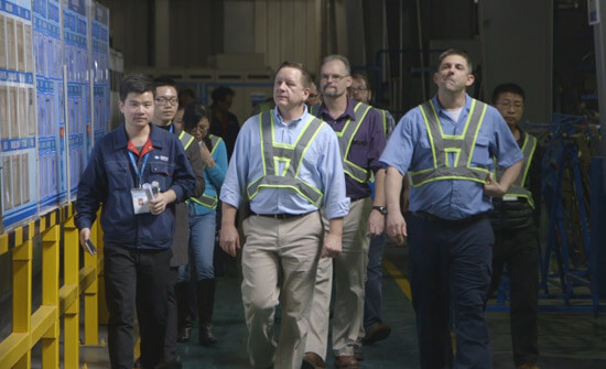 For the first half of American Factory, Bognar and Reichert seem objective and even optimistic about the prospect of a Chinese-run factory on American soil. There are differences between the factory workers, to be sure. When a group of American workers visits the Chinese headquarters to observe their efficient practices, two members of middle management, an American and a Chinese man, discuss their employees: the Chinese operate like machines, adopting a military-style regimentation to their work routine; the Americans are thought to be lazy, unwilling to devote the hours necessary to get the job done. The Chinese businessmen attend their meetings in suits; one of the Americans wears a Jaws t-shirt to the same meetings. But after the day’s assembly, there’s a party where one large American executive must excuse himself after dinner. His eyes filled with tears, he explains that he was struck by the feeling that “we’re one.” It’s either the most tender and hopeful moment in the film, or the guy simply had too much to drink.