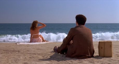 And while ending the picture there might have connected back to the conclusion of Blood Simple by being a cruel punchline on the protagonist, the final moment of Barton Fink has more in common with the uncertain, searching feeling at the end of Raising Arizona, or later in The Man Who Wasn’t There and A Serious Man. After seeing Lipnick, Barton visits Zuma Beach and sits in the sand. A woman sits down in front of him. He tells her that she should be in the pictures, and then they both look out at the ocean. This final shot of the film recalls the painting in Barton’s room at the Earle, an impossible fantasy. Some might argue that all of Barton Fink takes place in those first days where Barton settles into his room, and our writer imagines the film’s entire scenario when he loses himself in the painting of the girl on the beach. Then again, perhaps the answer lies in the repressed rage of the common man—which Barton so fervently believes he understands, and which has snapped back and bit him on the nose—has consumed him. All Barton can do is contemplate what it all means, if anything. Does he even realize he’s sitting in a scene identical to the painting? To be sure, the Coens playfully and symbolically engage the relationship between fantasy and reality, between art and life, between the life of the mind and the real world.