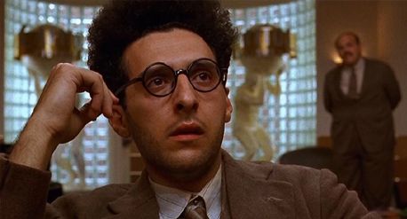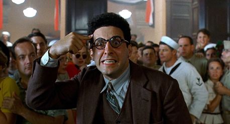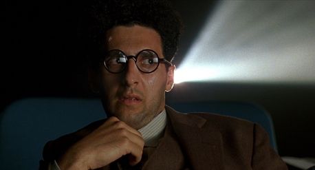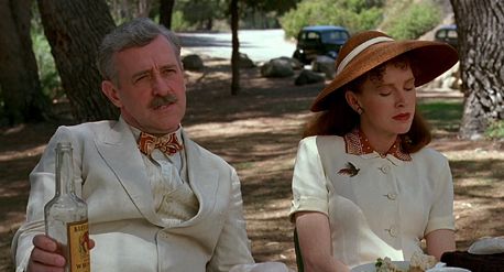Barton searches for inspiration from Mayhew, but comes to realize this “great American writer” is no more than a sorry drunk whose mistress writes his material. Soon enough, Barton must answer for his would-be script. The Coens create a trio of Hollywood studio personalities that lighten this otherwise pitch-black comedy by a few shades. Tony Shaloub plays Barton’s producer, Ben Geisler, another fast-talker of the His Girl Friday variety, not unlike Shaloub’s lawyer character in The Man Who Wasn’t There. When Barton admits he’s having trouble getting started on the script, Geisler says flatly, “Wallace Beery. Wrestling picture. Whaddya need a roadmap?” Lerner’s hilariously motormouthed Jewish producer (who refers to himself as a “kike”) goes out of his way to humiliate his longtime assistant Lou Breeze (Jon Polito) to demonstrate his power in front of Barton, whom he’s “taken an interest in”, much to Barton’s dread. Under a bad comb-over and butlery mannerisms, Breeze used to be a major player in Hollywood, until he wasn’t. Will Barton end up like Breeze? That’s the fear. The night before he’s supposed to pitch his outline to Lipnick, Barton has no other choice; he calls Audrey to help. Instead of working on the script, however, they make love. When Barton wakes up the next morning, he sees the mosquito that has terrorized his room for days; it lands on the sleeping Audrey and begins to feed. When he slaps it, he kills the mosquito but Audrey doesn’t react. Barton tries to nudge her awake, and then a thick pool of blood seeps from under her body onto the sheets. All Barton can do is scream.
