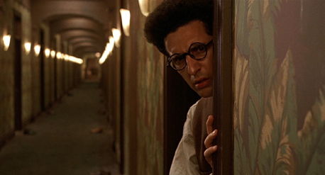 When Barton checks into the tired and empty Hotel Earle, an all but abandoned building that probably enjoyed some modest success in the 1920s, the peppy bellhop Chet (Steve Buscemi) brings Barton to his room for an indefinite stay—the hotel’s frightening motto, “A day or a lifetime.” It’s a shabby room filled with distractions. Brown water stains blotch the ceiling. The intolerable heat melts the oozing wallpaper glue and sheets begin to peel; Chet delivers tacks to Barton’s room so the sheets can be pinned up. Somewhere in his room buzzes a mosquito. And through his room’s thin walls he can hear his neighbors making love or, in the case of Charlie Meadows (John Goodman), the insurance salesman next door with the gift of gab, having heated conversations with himself. Barton even calls Chet to complain about Charlie’s noise, inciting Charlie to knock on Barton’s door and smooth things over with a drink. These distractions add to his already incapacitating writer’s block, born from impossible expectations set upon him. “We expect great things,” Lipnick told him. But as Barton sits in front of his typewriter, in front of the three sentences he was able to eke out over the course of several days, he wonders whether his play was just a flash in the pan, or if he actually has some real talent. Charlie tries to help, listening to Barton prattle on about “the life of the mind,” Barton’s self-important concept in which “the stuff of life” is transported to paper. Charlie puts forth, “I can tell you stories that would curl your hair,” but Barton doesn’t listen. He’s too caught up in his Living Theater diatribe, and the consequences are grim and frightening.