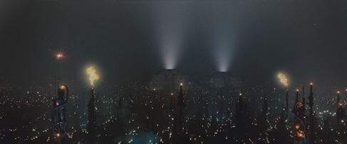 Nevertheless, the film has been so elaborately conceived that everything from the costumes to the architecture still seem like components from a plausible dystopian future. The troubled world of Blade Runner, set in the Los Angeles of 2019, is expertly conceived by Dick and realized by Scott, and shows an oppressive weight on nature and humanity. A violent air of congestion transforms the complex cityscape into an almost irrational space. There is always a police presence, a monitoring airship, scanners, advertisements, or sensors flashing. This world feels familiar, yet futuristic, as designers were inspired by highly modernized and foreign cities like the frantic, neon-laded designs of Tokyo and Hong Kong. The film’s urban culture has long since grown out of control and deteriorated. The quality of life is low, justifying the numerous mentions of the idealized off-world colonies advertised on a floating airship above the city. The urban planners have given up on simplifying or reducing their cityscape; the inhabitants’ only hope is to leave Earth. Society has destroyed itself, beaten itself down with technology and architecture gone wild. And so, Blade Runner, as a concept of futurism, remains almost precognitive, certainly plausible, and even far removed from fantasy, noting how truly obscured humanity becomes when so disproportionately mixed with technology. Such cityscapes have been prevalent in cinema since the dystopian elements of Metropolis (1927) and Things to Come (1936) first graced the screen. Their monumental and imposing environments of overcrowded urbanism are breeding grounds for human alienation and the realized dreams of technology turned into nightmares. Blade Runner takes the idea of a city’s capacity to alienate and pushes it further, offering a city virtually abandoned and left to a small general population, who now has “plenty of room” in a city that feels overcrowded nonetheless.