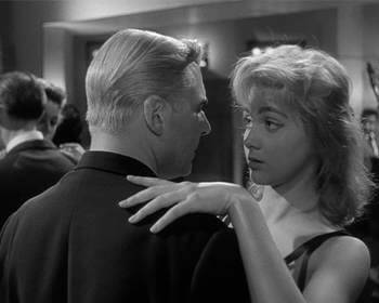 We see a testament to Bob’s character in pouty-lipped seductress Anne (Isabelle Corey), an amateur working girl whom he observes accepting a ride from an American on a scooter early in the film. He notices her again at Yvonne’s and steps in to rescue her from a pimp, Marc (Gerard Buhr), who offers her a job. Bob tells Marc to get lost and invites Anne over to his table, where his young apprentice, Paolo (Daniel Cauchy), who idolizes Bob, takes a liking to her. And though Anne and Paolo connect in a tryst, she remains smitten with Bob and never commits to Paolo in spite of his devotion. She becomes a cigarette girl at a nightclub, and her promiscuity quickly moves her up to a hostess. In one scene, she and Bob dance, and he always knows when to step away before the unspoken sexual tension between them becomes too apparent. For Bob, honor is more important than women. Later, Paolo boasts about their upcoming heist to Anne, who in turn spills to her casual lover, the pimp Marc, who also happens to be a police informer; the message gets to Commissaire Ledru and suddenly the plans for the Deauville have been exposed. When Bob finds out, he scorns Paolo and slaps Anne, but he also leaves Yvonne his house key for the girl, knowing she will need a place to stay after Paolo kicks her out for betraying him. Bob’s basic decency never fails, and that quality remains a recurrent signifier in French gangster films, especially those by Melville.