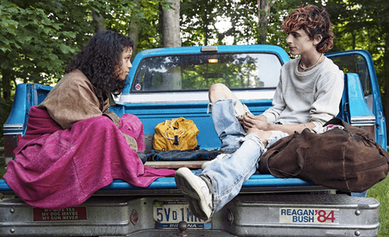 At another stop in Indiana, Maren meets Lee (Chalamet), whose scrappy kindness and punkish energy feel safer and less guarded than Sully. Chalamet plays Lee like a junkie whose dark past and solitude reframe the cannibal-as-metaphor through his displacement. Maybe it’s Lee’s similar age, his faded pink hair, his wiry frame, or his admitted big attitude that makes up for his small stature, but Maren feels comfortable asking him for help. Lee has a curt but honest way of speaking with her, as though he’s holding nothing back or would say so if he was. Their eventual romance doesn’t develop immediately, even though the chemistry between Russell and Chalamet is palpable. Rather, their relationship grows as first loves often do, through shared discovery. Having lived a sheltered life thanks to her father, Maren doesn’t know popular music or much about the world, and Lee provides an introduction, leading to a cute moment when he plays her the Kiss song “Lick It Up” and sings along. He also teaches her how to survive with the occasional small-time robbery or carefully targeted kill, and he offers to help find her mother. All the while, Maren feels thrust into moral chaos over having to feed, while both fine young cannibals have parental issues looming in their traumatic past.
