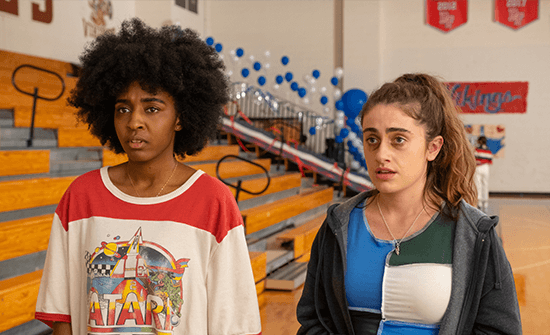 Most comedies that inspired Bottoms look bland and are shot with simple, straightforward aesthetics. They’re brightly lit affairs with little consideration of visual choices, apart from supporting the jokes through punch editing. But Seligman reteams with her d.p. from Shiva Baby, Maria Rusche, to create fluid camera movements, careful blocking, and visually punctuated humor. Rusche has an exceptional understanding of space and how to use focus and zooms to punctuate a joke, and she draws from comedies, Fincher thrillers, and sports movies to build the look and feel of Bottoms. The score by Charli XCX and Leo Birenberg, too, works on several layers (though it’s less of a full character in the comedy than Ariel Marx’s vital music on Shiva Baby). Production designer Nate Jones borrows from classic teen comedies to create the high school, insomuch that the surroundings have an almost throwback appeal (there’s minimal smartphone and social media action onscreen) but not in such a way that the milieu feels dated. Rather, the film feels timeless, and that’s part of what will make it last.