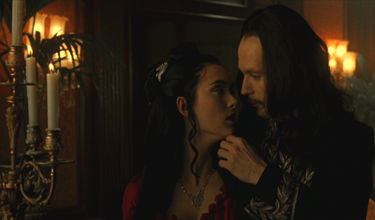 Coppola’s most brilliant scenes in the film take place inside Castle Dracula, where the world does not behave as it should. At Borgo Pass, a demonic carriage driver outstretches his arm and grabs Harker from several feet beyond its reach, lifting its passenger into the carriage. When Harker arrives at the castle, Oscar-winning sound effect design delivers whispers and unintelligible screams coming from all around us (a top-notch audio system makes home viewings all the more unsettling). Coppola projects vampire shadows onto the wall and they move independently of their owner, eager to break free of their master at any moment and strangle Harker. All around, the walls move closer, trapping Harker in his other-worldly environment where mice crawl on the ceiling and the mirrors cast no reflection of the Count. Aside from the appearance of blue flame outside the castle, all of the film’s effects were created using in-camera techniques and no computers. Seeing films like this makes one ache for the days before CGI, when filmmakers still looked to the past for cunning ways to achieve movie magic. It took only Coppola’s enlivened willpower to return to these undeniably effective methods, which could be used today except for the lacking ingenuity of young filmmakers. Behind the artifice, Wojciech Kilar’s resounding score instills the film’s operatic sensibility by reverberating it into our bones during the film’s many climaxes.