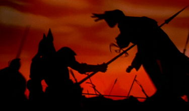 Relevant if unconscious themes aside, Coppola’s story reacts less to early ‘90s AIDS hysteria and, in fact, permeates sensuality into the production, enhancing its romanticized mannerisms through an omnipresent theatricality. When budget constraints forced Coppola to shoot on soundstages and special FX wizards told him modern technology couldn’t achieve the desired effects he wanted, Coppola made his most inspired decision and hired his son, Roman, to oversee second unit effects using old-fashioned techniques—not unlike the original Universal horror films like Dracula and Frankenstein, although enhanced with Coppola’s assured hand. Miniatures and models render the Carpathian Mountains and Castle Dracula and train sequences, whereas Victorian London is recreated with all the atmospheric detail Coppola could muster into a set piece. The opening sequence detailing Dracula’s battles in the Crusades appears as two-dimensional silhouettes shot against a matte painting; later, we see the image repeated in London’s cinematograph using miniatures cut to perspective, a gorgeous but basic approach. Simple tricks like double exposures, projected images, and film stock played in reverse achieve some of the film’s eeriest effects, and yet these are methods that have been used since cinema began.