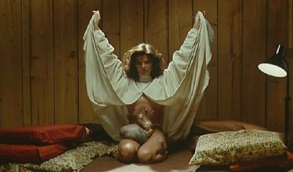 For realistic dialogue, he took lines almost verbatim from actual arguments with his ex-wife. He would later admit that the familial conflicts of the story could be considered standard melodrama, what he calls a “disease-of-the-week” story, but his weighty approach to such gory imagery proves unique in horror of the period. The grotesque visuals in the film reach their peak in the climax when Frank confronts Nola. Up to this point, the viewer has only seen small sores, a large lymphatic tumor, and mutated children—all rather tame for Cronenberg, considering the vast effects-driven experimentation that came in his earlier work (bubbling stomachs, phallic armpit parasites, etc.). Eggar plays her entire role seated or on her back, seemingly implanted onto the ground like a pregnant animal. When she opens her garb to Frank in the finale, she reveals large boils, but also a birth sack emanating from her belly, reminiscent of the placental casing that emerges from many mammals during labor. Nola bites the sack open with her teen and bloody fluid pours out; she tears the sheath away and unveils her psychoplasmic child. Licking the thing clean like an animal mother, the image is both unsettling yet inspired by Cronenberg’s logical-if-malformed biology. The sight is at once monstrous and bizarrely natural. Censors required Cronenberg cut the scene for its graphic nature, despite the fact that the image is not one of violence or depravity, simply warped motherhood.