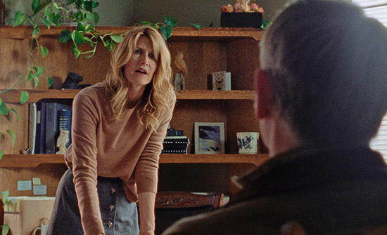 The first story follows Laura Wells (Laura Dern), a lawyer in Livingston who has just had sex with a married man, Ryan Lewis (James LeGros), on her lunch break. When she returns to work, she finds a client, Fuller (Jared Harris), waiting for her. She has spent the last eight months explaining that, because Fuller has already settled with his company after an accident left him nearly blind, he’s unable to sue again even though the condition has worsened. It takes Fuller getting a second opinion from a male attorney to believe Wells’ legal advice. His next course of action is to get a gun and break into the company’s offices to prove his case, resulting in a hostage situation overseen by a calm-as-can-be cop (John Getz). Regardless of how cinematic a hostage crisis may seem, Reichardt’s attention remains on Wells, who helps convince Fuller to turn himself over to the police, and then returns to the usual tempo of her life. At her core, she’s a woman who, at the end of the day, unwinds on the couch and curls her bare toes against her snoozing dog’s fur, adaptable and even stoic to whatever the world has in store.