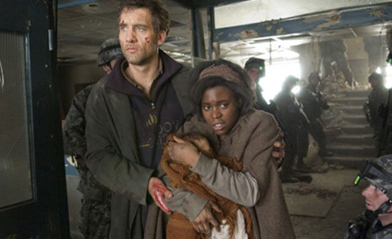 Drained of color and bleakly ashen, Children of Men unfolds in the United Kingdom, one of the last few stable governments in the film’s world. With Baby Diego dead, humanity faces its last years. Refugees, asylum seekers, and immigrants arrive in a mass exodus, fleeing their own crumbling countries. The British government targets them, focusing all political and military resources on containing them inside barbed-wire camps and cages. The police state’s propaganda machine warns to “Protect Britain. Report all illegal immigrants.” Or “To hire, feed, or shelter illegal immigrants is a crime.” Meanwhile, they issue government-sanctioned suicide kits to ease humanity’s slide into oblivion. Rebel groups conspire to seize control, and factions with names like “Repenters” and “Renouncers” divide society. Looters hide in the forests and attack passers-by. And as we learn later, the government attempts to create order by perpetrating random bombings and blaming them on rebels to stoke fear and foster administration support, capturing the real-life paranoid theories that the US government concocted 9/11 to gain additional control over the country. Even though the film bears signs of a dystopian genre exercise, it’s oddly familiar. Whether that says something about the film or our present situation is up to the viewer.