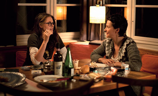 Assayas also conjures two of the finest performances from Binoche and Stewart, who engage in dialogue that, if performed with any less authenticity of character, might have become didactic. Instead, during the ongoing debate between Maria and Valentine about the play, we watch as the performers realize the emotional subtexts through subtle flourishes, body language, and aching moments of honesty. Binoche’s portrait of Maria as a repressed Helena, clinging to the authority of age yet desperate for the approval of youth, comes through in her interactions with both Valentine and Jo-Ann. “What do I need to do to make you admire me?” Maria asks Valentine at one point, just before their personal and professional relationship come to an end. Her obsessive behavior repeats itself with Jo-Ann after Valentine is gone. She attaches herself to the young star like a pilot fish who thinks she’s a shark, captivated by the whirlwind of celebrity gossip and paparazzi that follow Jo-Ann everywhere. Even within those moments where she can use Jo-Ann as a proxy to relive her youthful celebrity, Maria is compelled to search for information about Jo-Ann on her smartphone, scrolling through images, despite being in her presence, that create an irreconcilable distinction between reality and the virtual world.