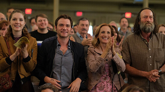 A remake of the 2014 French-language film La Famille Bélier, Heder’s version follows Ruby Rossi (Jones), a hearing teenager from Gloucester, Massachusetts. Since she was very young, Ruby has been a translator for her family of deaf, blue-collar, small-town fisherpeople. She interprets for her parents, Jackie and Frank (Marlee Matlin and Troy Kotsur), even in the most intimate of situations. For example, one scene finds Ruby having to hear about her parents’ shared case of jock itch from a doctor—mortally embarrassing for any teenager. But then, the Rossi family has few inhibitions to comical effect. Ruby’s sexually active parents don’t hide their enduring affection, and her older brother (Daniel Durant) doesn’t mind sharing his Tinder selections at the dinner table. Like any other family, they bicker and tease, signing insults like “shit face” and “twat waffle” at each other casually. But they also rely on each other to maintain the family’s fishing boat business.